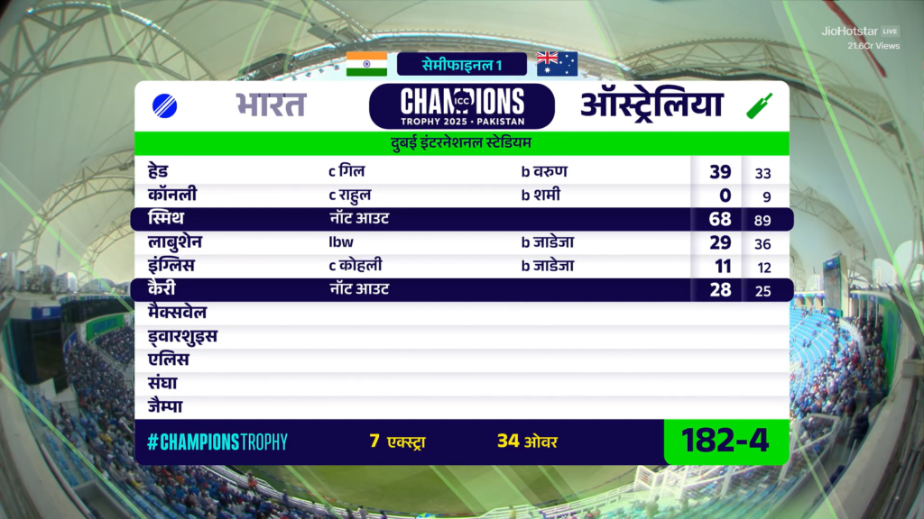 The highly anticipated semi-final clash between India vs Australia semi-final live in the 2025 ICC Champions Trophy is currently underway at the Dubai International Cricket Stadium in Dubai, United Arab Emirates. The match began at 1:00 PM local time (09:00 GMT).
