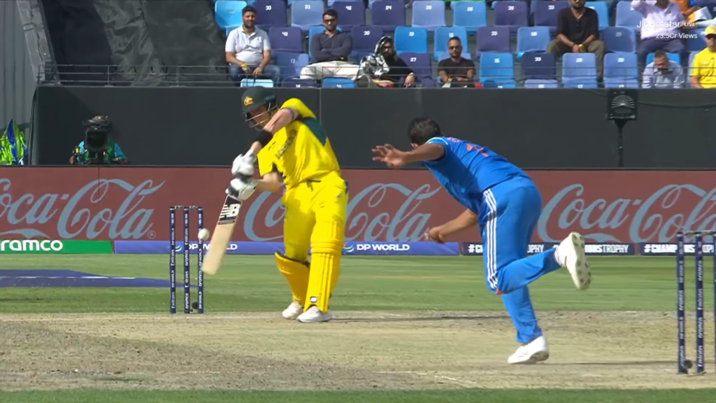 India got the most crucial wicket of Steve Smith in the 37th over and replaced by the Glen Maxwell.